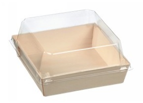 Il contenitore in legno laminato quadrato 118x118x30 mm è una soluzione eccellente per offrire una presentazione naturale alle tue preparazioni fredde.