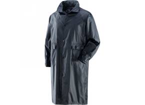 Cappotto in nylon spalmato internamente in PVC SPECIFICHE: peso tessuto 200 g/m2 Spessore 0,18 mm Cappuccio fisso a scomparsa con coulisse. Chiusura con bottoni automatici. Aereazione sul dorso e sotto le ascelle. 2 tasche con patta antipioggia in vita. Soffietto controvento nella manica.