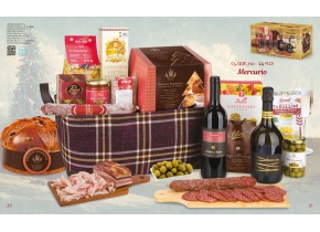 * Porta Giochi Moda & Stile con Manici * Vino Spumante Extra Dry Glera 75 cl Vibe * Vino Rosso Sangiovese Romagna DOC 75 cl Cascina S.Maria * Panettone Tradizionale con Burro delle Alpi Piemontesi 750 g Respiga * Cantuccini agli Agrumi 80 g Belli * Tartufi di Cioccolato Fondente con Crema di Nocciola 80 g Dulcioliva * Casarecce Pasta di Semola di Grano Duro Trafilata al Bronzo 250 g Dalla Costa * Sugo alle Olive 180 g Villa Reale * Olive al Naturale 290 g Villa Reale * Tarallini Pomodoro e Origano 100 g Terre di Puglia * Lenticchie Chicchi della Fortuna 250 g Melandri * Cotechino Cotto 250 g Salumificio Vecchi * Salame Chianotto 200 g circa Norcineria Toscana * Pancetta Stagionata 200 g circa Piacenti San Gimignano