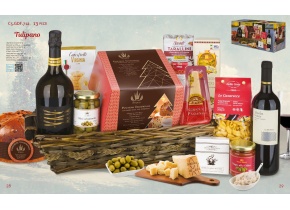 * Cesto in Vimini con Manici * Vino Spumante Extra Dry Glera 75 cl Vibe * Vino Rosso Veneto IGT Merlot 75 cl Le Morre * Panettone Tradizionale con Burro delle Alpi Piemontesi 750 g Respiga * Canestrelli 80 g Virginia * Casarecce Pasta di Semola di Grano Duro Trafilata al Bronzo 250 g Dalla Costa * Sugo alle Olive 180 g Villa Reale * Olive al Naturale 290 g Villa Reale * Tarallini Pomodoro e Origano 100 g Terre di Puglia * Lenticchie Chicchi della Fortuna 250 g Melandri * Cotechino Cotto 250 g Salumificio Vecchi * Grana Padano DOP Stagionatura Oltre 16 Mesi 150 g circa Antica Formaggeria * Crema di Lardo alle Erbe 90 g circa Larderia La Repubblica