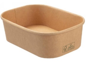 Contenitore rettangolare in cartoncino avana con laminazione in polipropilene (PP).