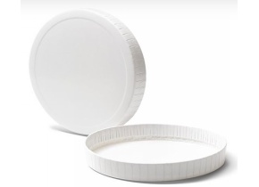 Coperchio in cartoncino bianco con bordo leggermente pieghettato per garantire buona aderenza al bicchiere.