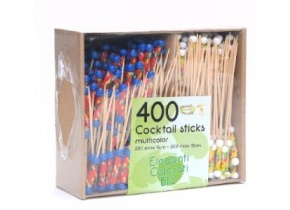 Set spiedini decorati con sfere e corda colorate da 9 e 12 cm.