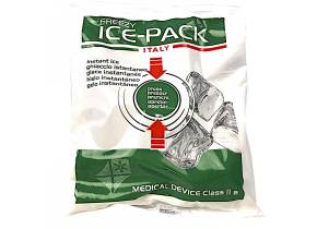 In materiale plastico, mantiene fredda la parte lesa per circa 25/30 minuti in funzione della temperatura esterna. Utile accessorio da usare in caso di traumi o piccole emorragie. Fornito in sacchetti di materiale plastico o rivestito in TNT, monouso. REPERTORIO DISPOSITIVI MEDICI Ministero della Salute nr. 163556/R