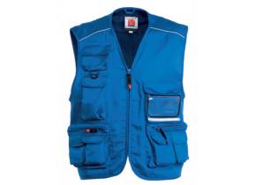 Gilet unisex con zip 8mm, due ampie tasche esterne con zip, ampia tasca al petto multifunzione, porta smartphone e bande riflettenti, anello porta badge; interno: