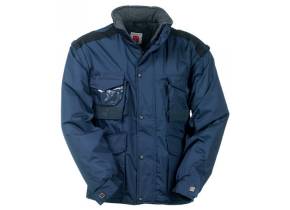 Giubbotto con maniche staccabili, cappuccio richiudibile nel colletto, polsini regolabili, bande riflettenti in tinta fronte e retro, spacchetto laterale con soffietto e zip;