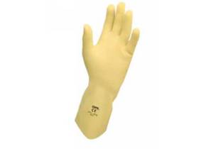 Guanto riusabile in Lattice di gomma naturale clorinato interno/esterno,, di colroe ambra, di forma anatomica per mano destra e sinistra, senza felpatura. Lavabile internamente e autoclavabile Trattamento interno antibatterico. Ottima sensibilità, tattile, destrezza e comfort. Buona resistenza meccanica e migliorata resistenza chimica a detergenti e detersivi ed a prodotti debolmente aggressivi di uso comune Basso contenuto di allegeni Utilizzo versatile dove è richiesta una buona sensibilità e comfort. Adatto all’uso prolungato. Ottimo rapporto qualità / prezzo Igiene, lavori correnti di manutenzione, igiene e pulizia -Manipolazione alimenti. cure veterinarie Evitare il contatto con sostanze tossiche e/o aggressive, olii e derivati da idrocarburi Prodotto contenente gomma naturale che può creare reazioni allergiche in soggetti sensibili Lunghezza 300 mm Spessore 0,35 mm Finitura esterna: romboidale su palmo e dita