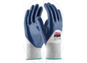 Guanto realizzato con supporto a maglia tipo filo continuo in nylon ed elastam. Morbido rivestimento in nitrile idrorepellente non traspirante per ottimizzare il contatto con superfici unte, umide e oleose. Buona presa ed elevato grip. Le innovative forme utilizzate simulando la mano a riposo riducono l’affaticamento e consentono la perfetta aderenza aumentandone la sensibilità tattile. Dorso areato – polso elasticizzato