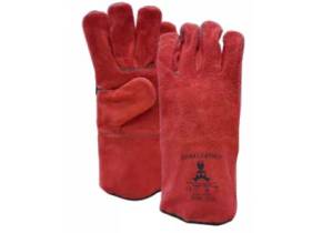 Guanto saldatore rosso in pelle crosta groppone, 35 cm
