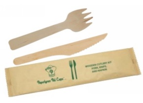 KIT LEGNO FORCHETTA+COLTELLO+TOVAGLIOLO 16CM+TOVAGL.22X22CM
