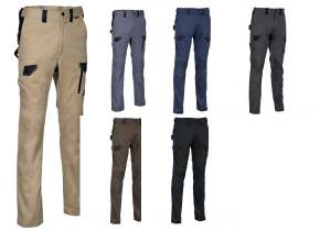 DESCRIZIONE: 2 ampie tasche anteriori, doppia tasca posteriore con pattina chiusa con snap, passante portamartello, taglio ergonomico di gambe e ginocchia, tasca laterale destra chiusa con snap, tasca laterale sinistra con doppia apertura (chiusa con snap e con zip), tessuto ad elevata percezione elastica
