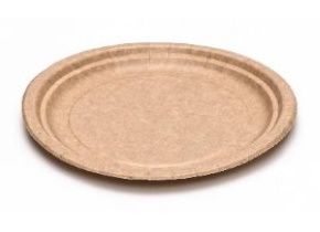 Piatto piano in cartoncino avana Ø 23 cm, bordo rigato. Bio coated.
