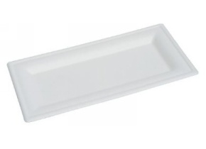 Piatto rettangolare in polpa di cellulosa bianca 26x13cm.