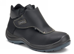 Calzatura con sfilamento rapido e coprilaccio in pelle cucito con filo ignifugo.