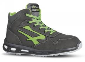 Scarpe antinfortunistiche alte, leggere e comode u power della linea Red Lion, con tomaia in pelle nabuk naturale bottalato, traspiranti, idrorepellente, puntale in alluminio, antiperforazione, antiscivolo e suola PU/PU, infinergy S3 SRC CI ESD