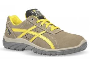 Scarpe antinfortunistiche basse, leggere e comode u power della linea SK GRIP, con tomaia in morbida pelle scamosciata forata, puntale Composite, antiperforazione, antiscivolo e suola PU/PU, S1P SRC