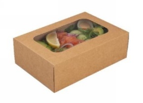 Custodia in cartoncino avana con interno bianco e finestra.