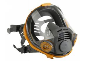 Semimaschera di taglia universale dotata di due raccordi rapidi a baionetta, per filtri serie 2000. Combinazione di gomma TPE e polipropilene autoestinguenti sovrastampati in modo da formare un corpo unico.