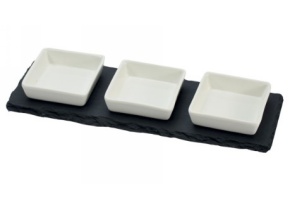SET 1 VASSOIO RETT.ARDESIA+3 VASCH.CERAMICA NERO/BIANCO
