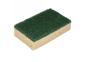Accoppiato spugna con fibra verde abrasiva. Ideale per la rimozione energica di sporco incrostato, vernici, calcare. Usare ad umido con o senza detergenti.