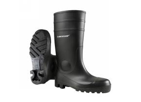 DUNLOP PROTOMASTOR FULL SAFETY. Un pratico e funzionale stivale di sicurezza in PVC con una punta in acciaio e lamina per la protezione da oggetti appuntiti e lesioni punta. Dispone di intersuola in acciaio a punta per l’impatto e la protezione di penetrazione. Puntale e lamina anti-foro in acciaio per la massima protezione